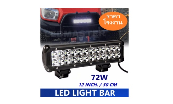 ไฟรถยนต์ 72W ขนาด 12 นิ้ว สปอร์ตไลท์ไฟรถยนต์ led ไฟหน้ารถ ไฟท้าย 12V-24V เเสงขาว งานพรีเมี่ยม สว่างมาก เเสงพุ่งเเละเเสงกระจาย