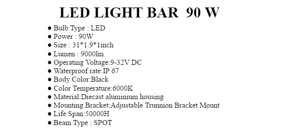 1. ไฟสปอร์ตไลท์ ให้กำลังไฟ 90 Watt (วัตต์) จาก LED high intensity ( 30 LED x 3 W )