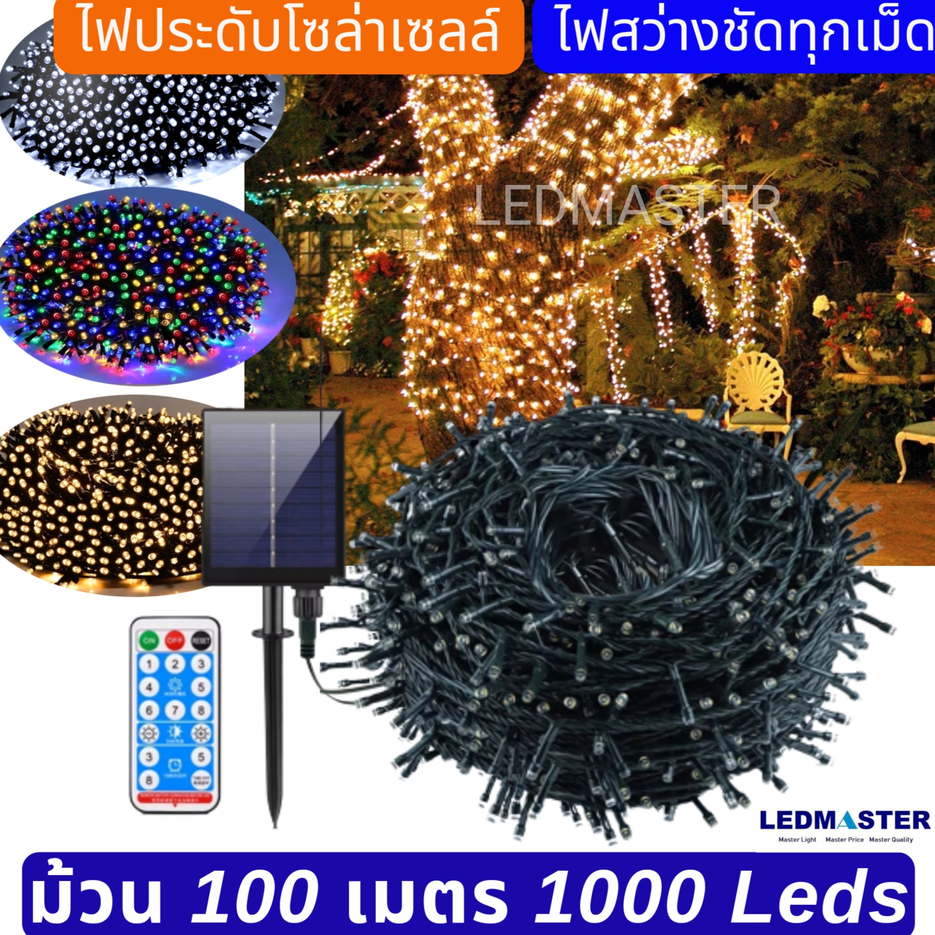 รุุ่นใหม่สุด ม้วนใหญ่ 100 เมตร ไฟประดับโซล่าเซลล์ led ปรับได้ 8 โหมดใช้งาน พร้อมรีโมท